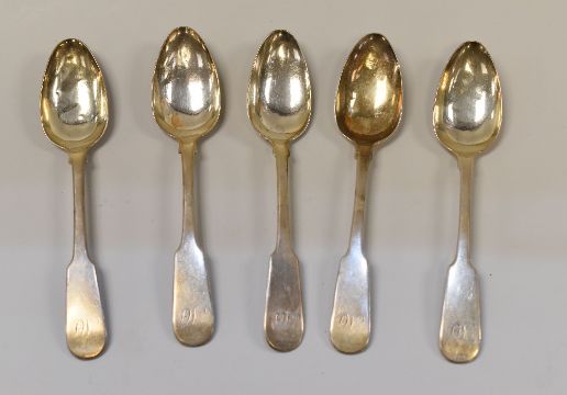 A SET OF FIVE GEORGE IV SCOTTISH SILVER TEA SPOONS, Edinburgh 1824, 2.7ozs
