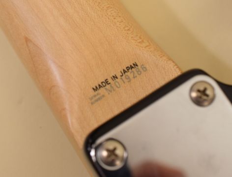 A FENDER STRATOCASTER ELECTRIC GUITAR original contour body, black with white scratchplate, serial number M019286, 78cms long