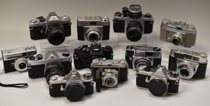 TWELVE VINTAGE CAMERAS including Zeiss Ikon 'Continette', Kodak 'Retina', 6 x Pentax etc