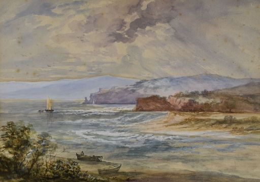 FREDERICK JOHN WIDGERY watercolour - coastal scene, signed and dated 1871, 26 x 36cms