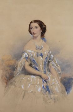 JAMES CURNOCK watercolour - three quarter portrait of a lady, signed and dated 1857(?), 50 x 33cms
