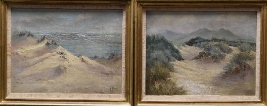 ADA IHLER (of Llandudno) oil on canvas, a pair - North Wales beach scenes near Deganwy, signature to one, 33 x 44cms