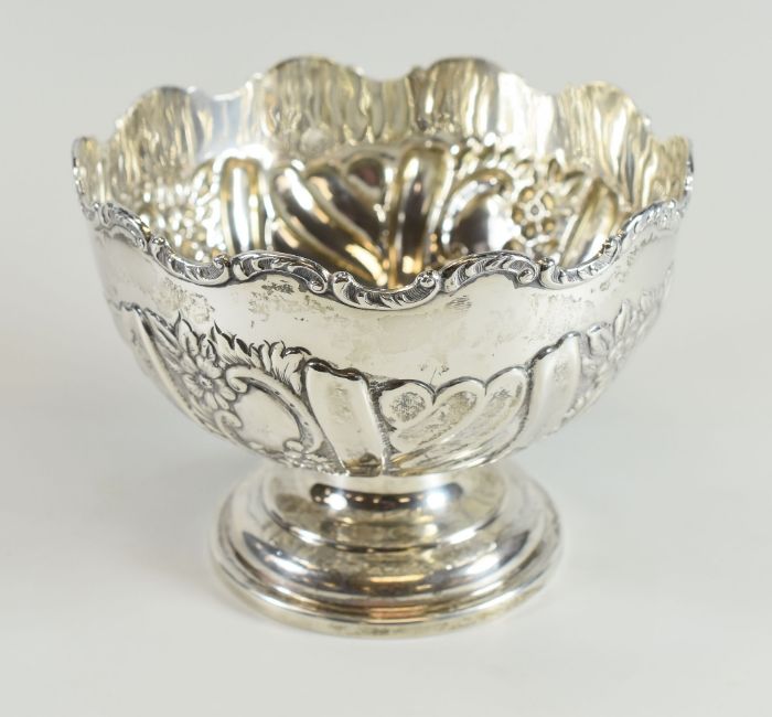 A SILVER MONTEITH raised over a circular foot and with alternating floral and fluted decoration to the body, Chester 1903, 9.7ozs