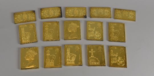 SET OF SIXTEEN PHILATELIC COMMEMORATIVE SILVER-GILT INGOTS by Hallmark Replicas Ltd, 11.76ozs total