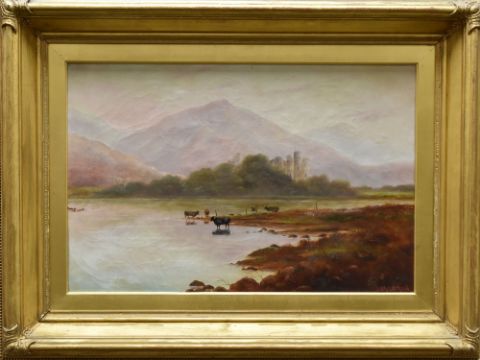 OLDHAM HART oil on canvas - Scottish landscape, entitled verso 'Loch Aire, Castle Kilchurn 1903' signed, 38 x 59cms