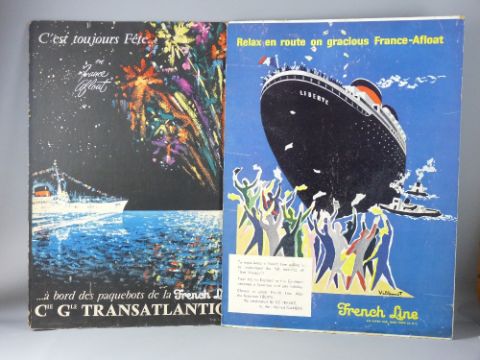 TWO UNFRAMED POSTERS ON BOARD - 1. C G Transatlantique - 'C'est Tout Jours Feta' and 2. French line - 'Relax en Route on Gracious France-afloat', each 87 x 64 cms