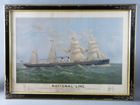 LITHOGRAPH - of the National Line 'SS Egypt' entitled 'National Line New York, Queenstown, Liverpool and London Direct', 70 x 100 cms