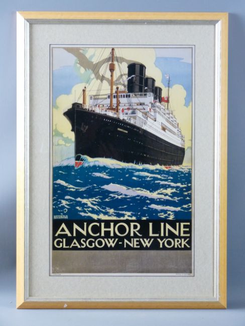 KENNETH D SHOESMITH coloured print, circa 2005 - of the Anchor Line 'Transylvania', Glasgow - New York, 53 x 34 cms