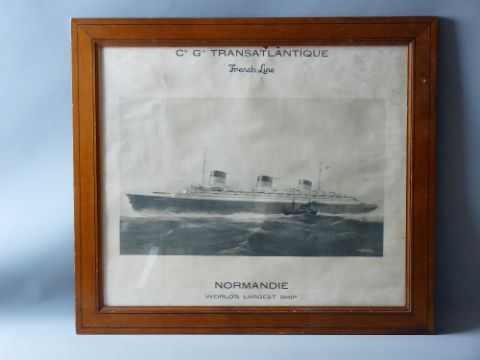 ALBERT SEBILLE black and white print - of the C G Transatlantique 'The Normandie' (world's largest ship), 49 x 56 cms