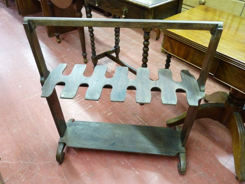 A GEORGIAN MAHOGANY BOOT RACK on scrolled shaped feet, 90 x 81.5 cms