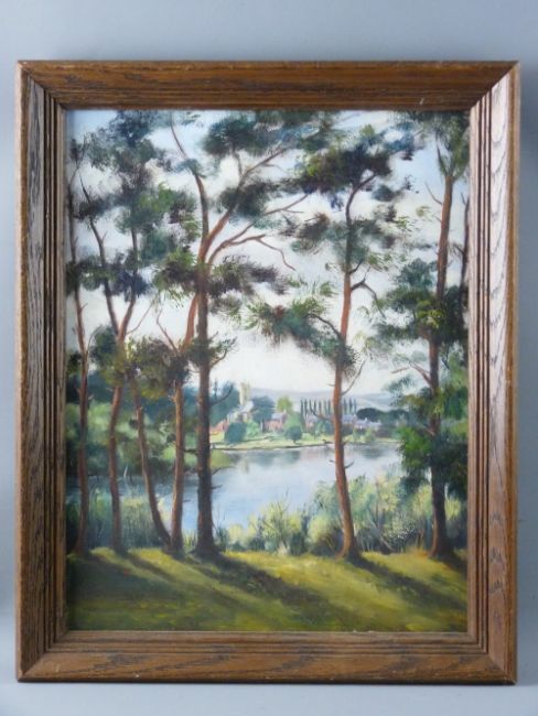 G V GADD early oil on board - Shropshire pastoral scene near Ellesmere, bearing original label verso with artist's Oswestry address, 44 x 34 cms