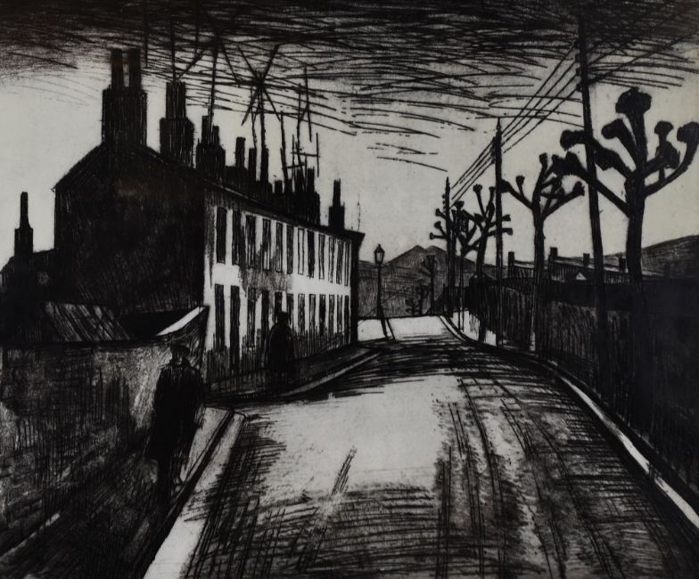 GEORGE CHAPMAN artist's proof etching - South Wales Valleys street scene with figures, signed, 53 x 62.5cms