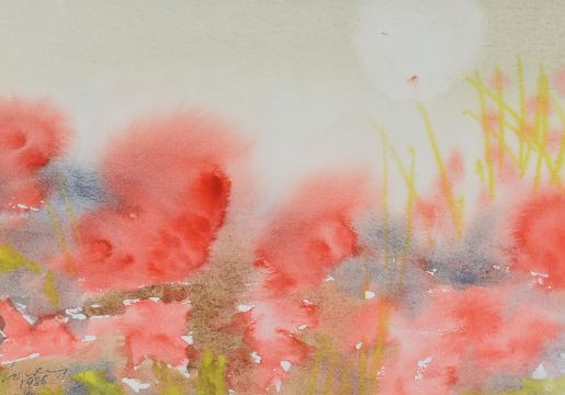 ARNOLD LOWREY watercolour - poppy field under the sun, signed and dated 1988, 15 x 21cms