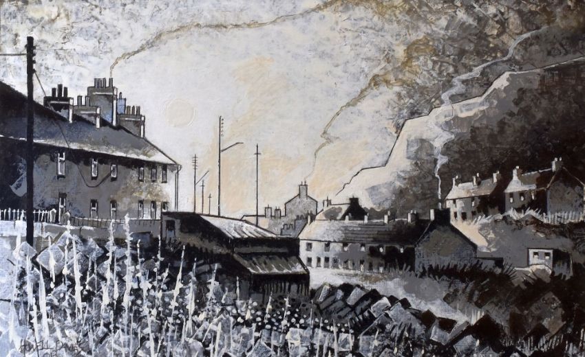 HOWELL DAVIES acrylic on board - Snowdonia town scene in winter, entitled verso 'Blaenau Ffestiniog', signed and dated '08, 25 x 40cms