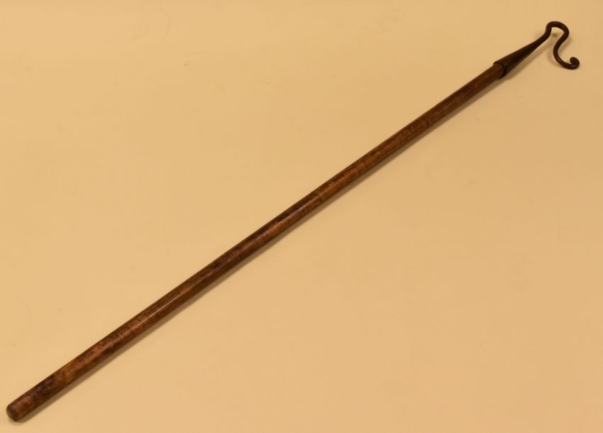 A NINETEENTH CENTURY SHEPHERD'S CROOK (WEST WALES) with iron-work fitting, 136cms long