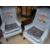 A pair of mid-twentieth century blue floral upholstered armchairs, a fabric covered box seat, and two matching foot stools