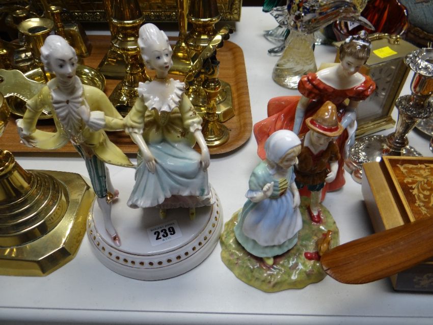A Royal Doulton figurine 'Winsome' HN220 together with a Paragon Hansel & Grethel group and a Capodimonte figurine group
