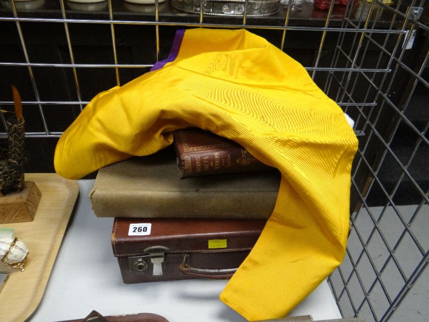 A parcel of Masonic items including a monogrammed leather case