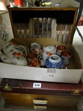A canteen of cutlery, a cased set of cutlery and a parcel of Oriental china