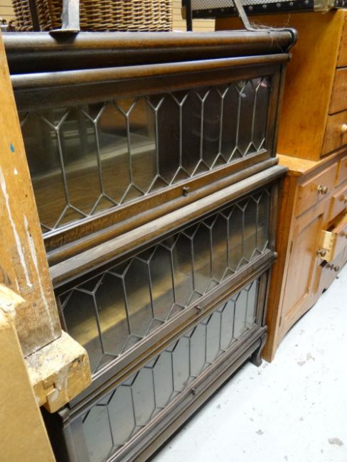 A three-tier glazed Globe Wernicke-style stackable bookcase