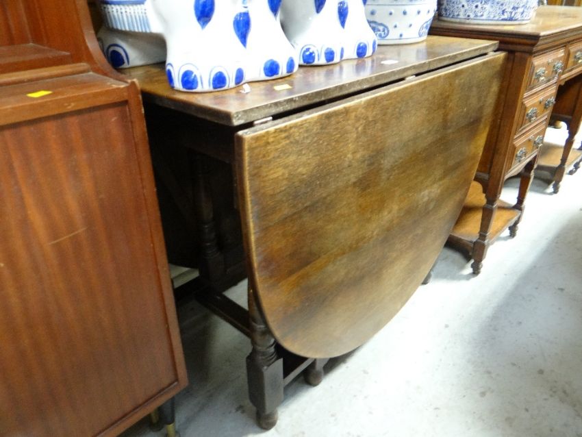 An antique drop leaf gate leg table with turned supports