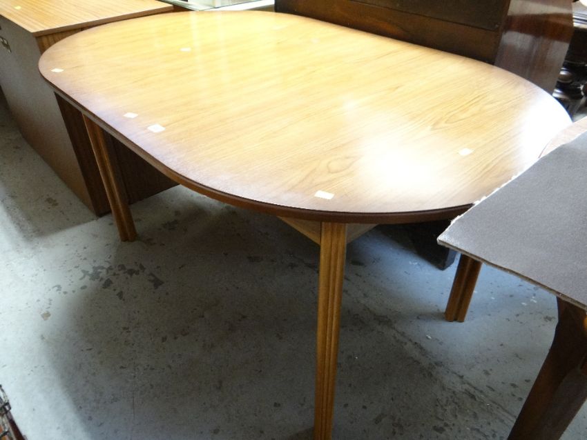 An oval extending dining table