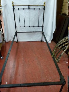 A VICTORIAN BRASS & IRON SINGLE BED FRAME, 93 cms wide