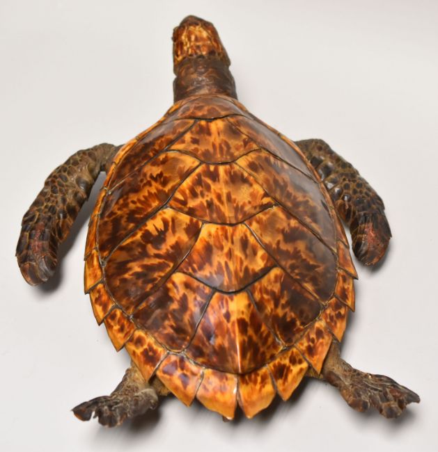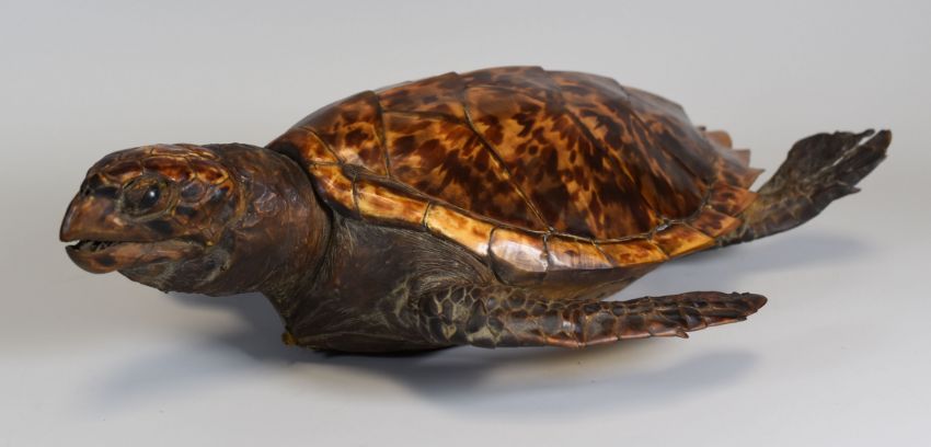 A GOOD EARLY TWENTIETH CENTURY UNWORKED TAXIDERMY SEA TURTLE, 45cms Condition: both shell and skin are in excellent exhibition condition Potential buyers of this lot must check with the relevant authorities for any import restrictions prior to bidding. CITES licence not required for sale.