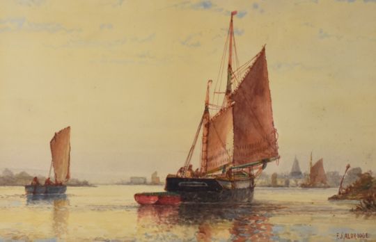 FREDERICK JAMES ALDRIDGE (1850-1933) watercolour - Bosham Reach, Chichester, signed, 24 x 37cms