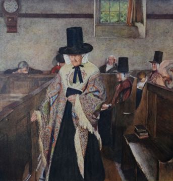 SYDNEY CURNOW VOSPER print - famous 'Salem' Welsh chapel scene and the infamous shawl, 53 x 50cms