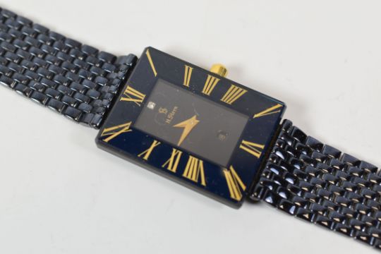 A GENT'S H STERN WRISTWATCH having a rectangular dial with diamond at 12, believed gold crown, Roman numerals and hands and with original coloured stainless steel braceletCondition Report: does not appear to be running presently but possibly new battery required. Condition otherwise excellent.