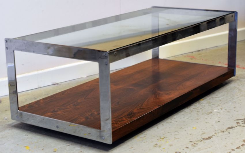 A DANISH-STYLE ROSEWOOD CHROME & GLASS LONG JOHN COFFEE TABLE of two tiers, 122 x 57cmsAn import / export certidicate issues by APHA will be required for purchase outside the EU Condition Report: no problems to wood or chrome other than slight surface scratches from light use