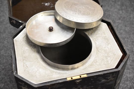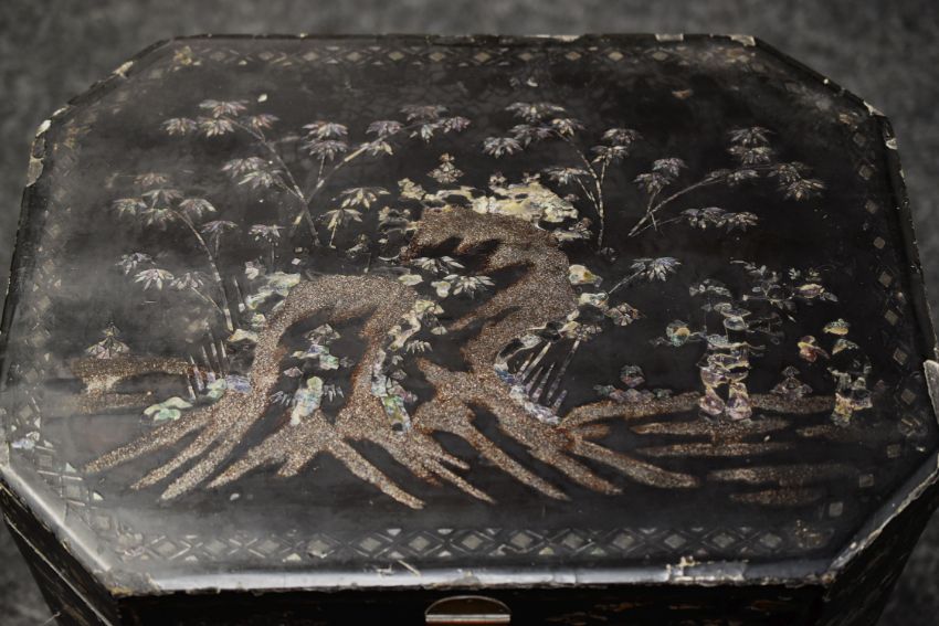 A MOTHER OF PEARL INLAID LACQUER-WARE STORAGE TABLE circa 1880-1900 Provenance: great-great uncle sea captain Magniac