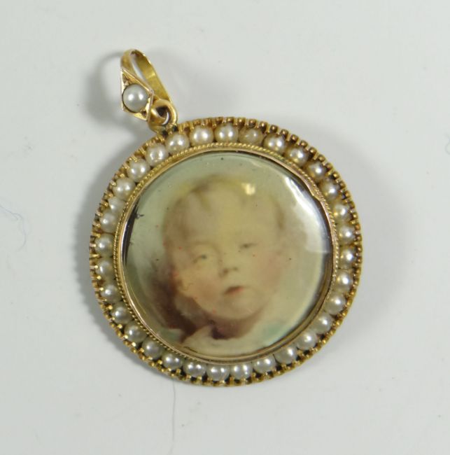 A 9CT GOLD & PEARL CIRCULAR ANTIQUE LOCKET, 5.2gms