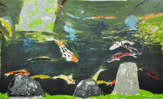 ELIZABETH BLACKADDER OBE RA limited edition (56/80) print - semi abstract view of swimming fish entitled 'Koi Carp, Chion-in, Kyoto', signed in full, 60 x 96cms
