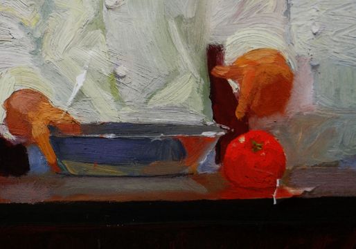 KEN AUSTER (American b.1949) giclee canvas print - a group of chefs preparing food, 88 x 133cm (please note: two areas of surface damage)