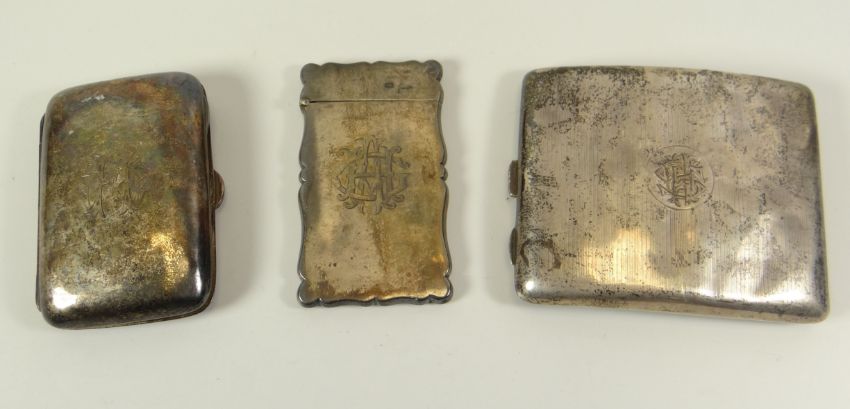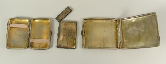 THREE SILVER CASES being a card-case with monogram and two cigarette cases, 6.2ozs total