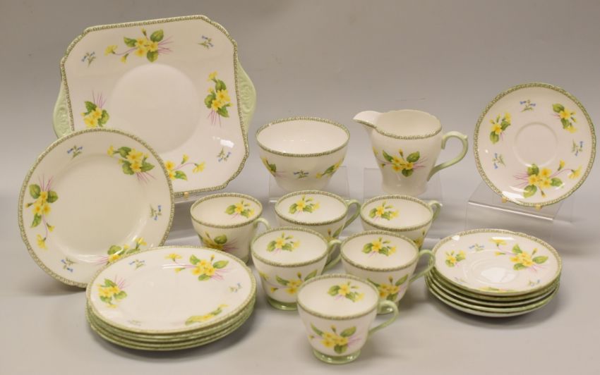 A TWENTY-ONE PIECE SHELLEY PRIMROSE TEA SETCondition Report: no problems in terms of damage or repair