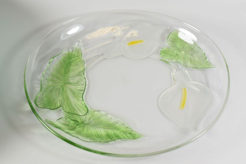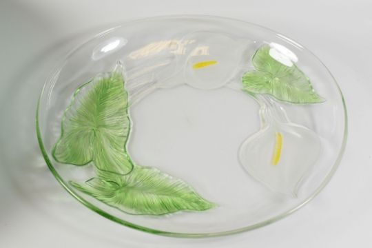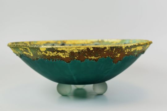 A BAVARIAN ART GLASS VASE, SCANDINAVIAN GLASS FLARED BOWL, AN ART GLASS FOOTED BOWL, two of the pieces signed / stamped