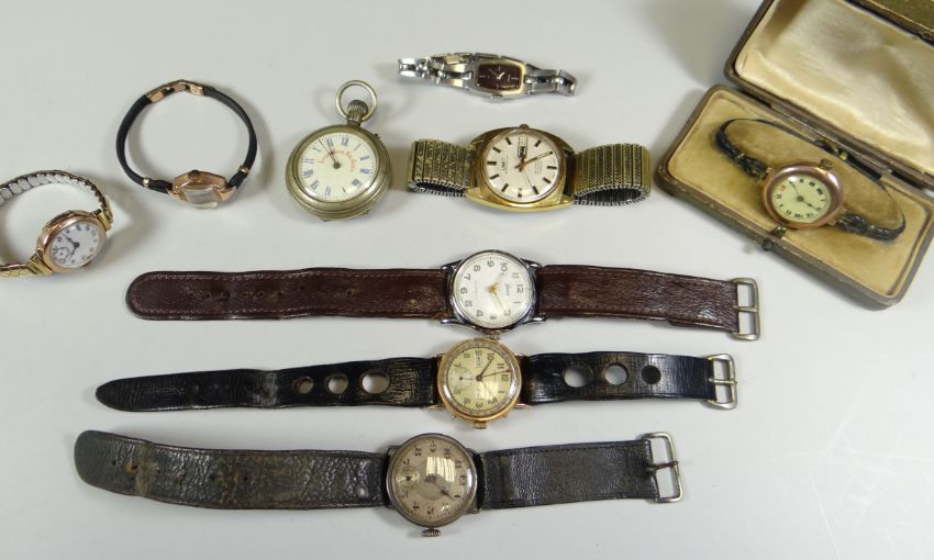 A PARCEL OF VINTAGE WRISTWATCHES including 9ct gold encased and together with a Salvation Army pocket watch