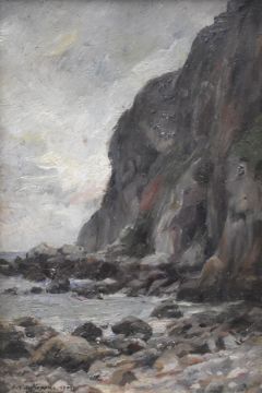 JOSEPH YELVERTON DAWBARN oil on board - North Wales headland entitled 'Little Orme' signed and dated 1905, 28 x 19cms