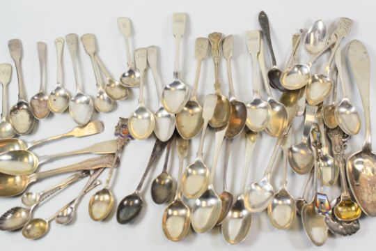 A VERY LARGE QUANTITY OF MIXED SILVER SPOONS all hallmarked, 20ozs