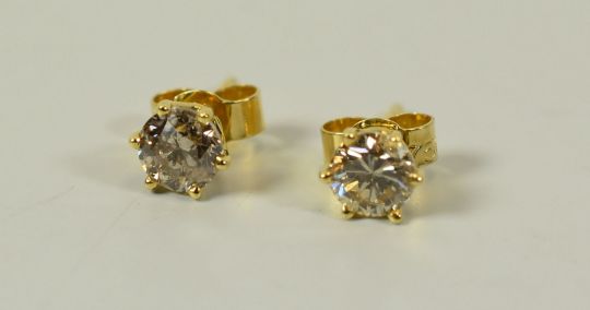A PAIR OF GOOD ROUND DIAMOND SOLITAIRE EARRINGS 0.5ct each approx in 18ct yellow gold