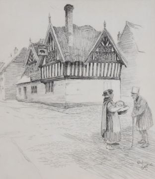 CECIL ALDIN print - of a coaching pub 'The George at Salisbury', pencil signed, 44 x 36cms together with a similar entitled 'The Bell at Waltham, St Lawrence' both with Fine Art Trade Guild embossed stamp and a coloured print of 'The Star and Garter', 38 x 43cms and two figures in conversation on street with half timbered public house in background, 43 x 37cms