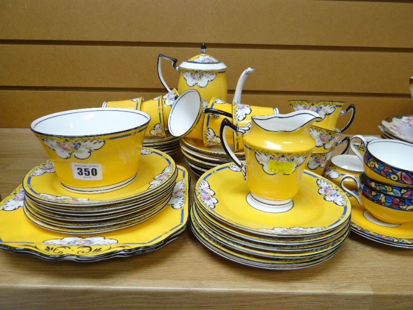 A quantity of vintage Duchess china tea ware in yellow ground with floral decoration