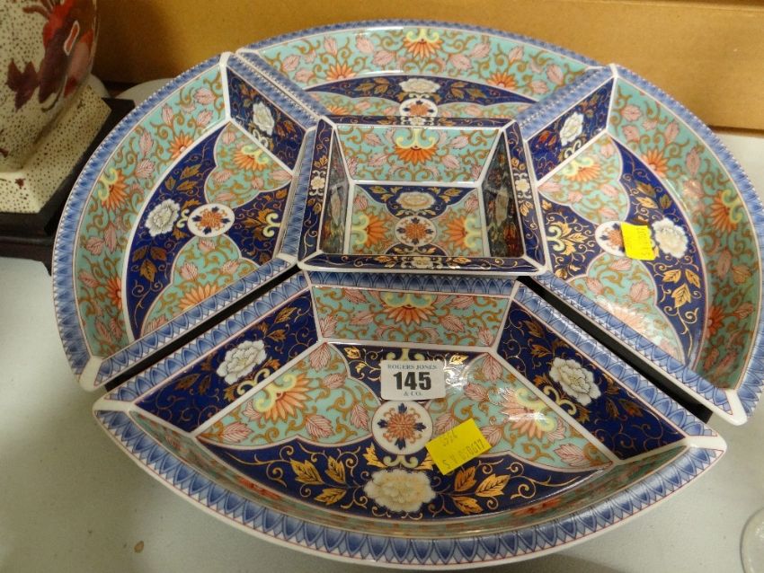 An Asian-style hors d'oeuvres dish on a rotating stand