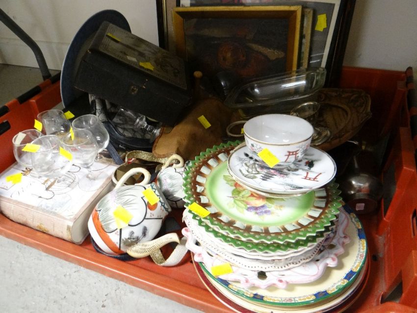 A parcel of mixed china, prints etc