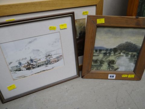 David Cowdry oil on board - river running through woodland together with a Valerie Ganz print of colliery in valley