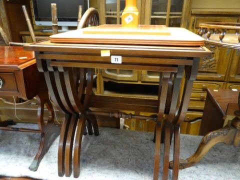 A Bevan Funnell 'Reprodux' furniture nest of three coffee tables in mahogany