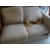A modern two-seater sofa with side stool in an oatmeal coloured fabric together with a brown dralon button backed armchair